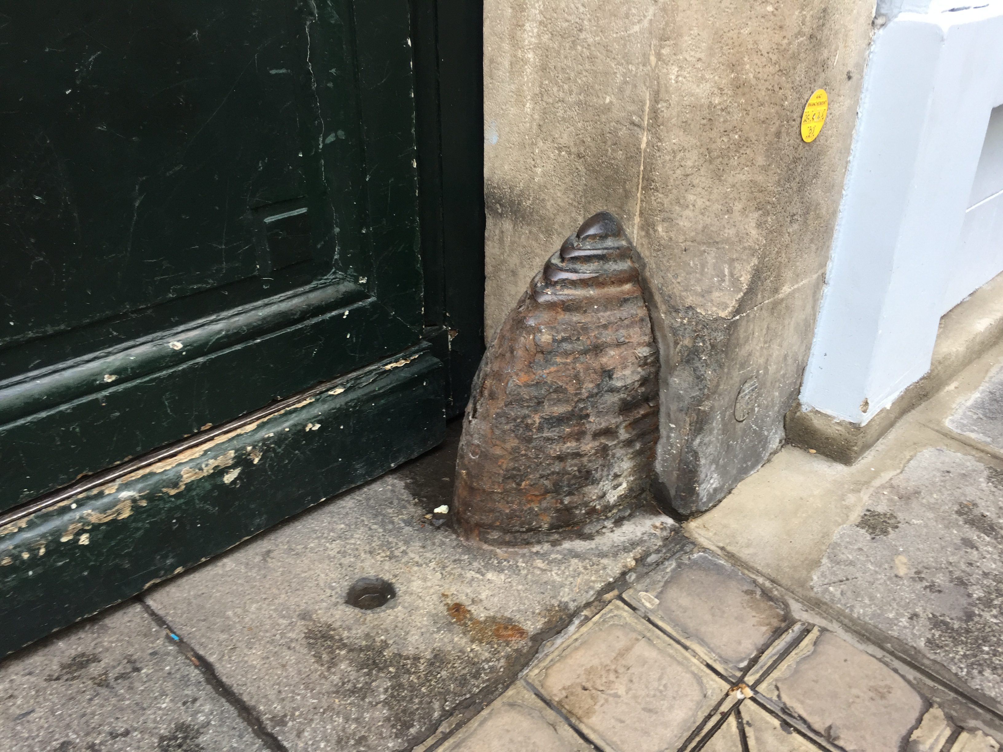 Yep, we’re talking about the chasse-roues, those iron, metal, and stone things – sometimes impressively ornate – that are installed on the bottom corners of the bigger doors across the city.